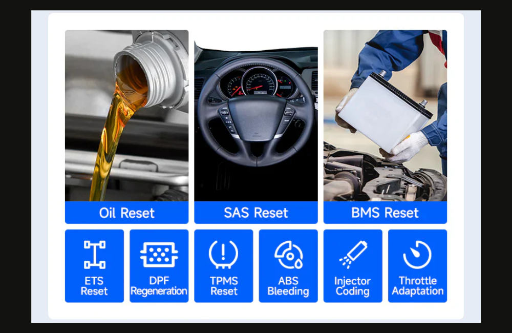- 9 Essential Maintenance Resets – Includes Oil, BMS, ABS Bleed, DPF Regeneration, Brake, TPMS, Throttle Adaptation, SAS, and Injector Coding.