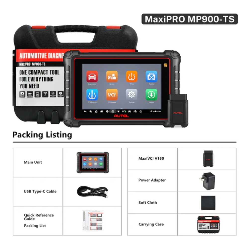 The Autel MaxiPRO MP900-TS is a professional automotive diagnostic and TPMS management system engineered for modern workshop automation. Built on Android 11 with an 8-inch high-resolution touchscreen, it delivers OE-level diagnostics across all electronic systems while supporting advanced DoIP and CAN FD protocols.