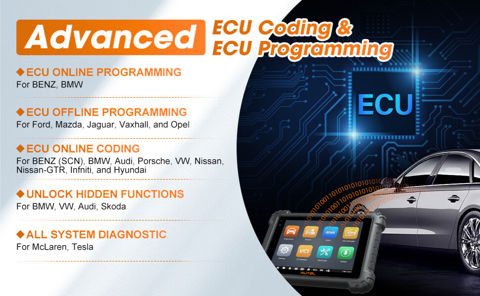 Unlock advanced vehicle capabilities with professional ECU coding and programming. Supports online and offline ECU functions for major brands including BMW, Benz, Audi, Ford, Nissan, and Tesla. Perform diagnostics, coding, and hidden feature activation with precision and ease.