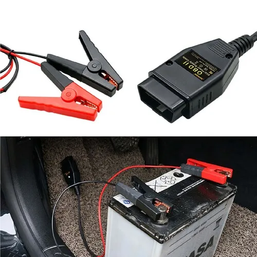 This cable helps keep power supply to the vehicle during battery replacement to avoid losing ECU memory. Perfect solution to save memory on various electronic systems including dashboard information, digital clocks, memory seats, ABS, anti-slip system, electric mirrors, radio and many more. Simply connect the 12V or 24V battery to the OBDII port (depending on vehicle's power) and perform battery replacement job.