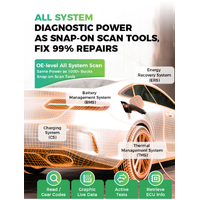 | Full-System Diagnostics for All Vehicle Modules : Access and analyze every control module—including engine, transmission, ABS, airbag, BMS, and HVAC—for comprehensive fault detection. Instantly read and clear DTCs and retrieve system status across EV and hybrid platforms |