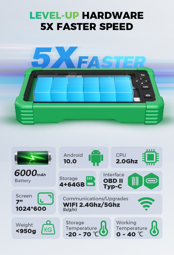 | User-Friendly Android 10 System with 7-inch Touch Display : Intuitive Android interface for fast navigation, multi-language support, and bright 1024 × 600 touchscreen designed for workshop environments. |