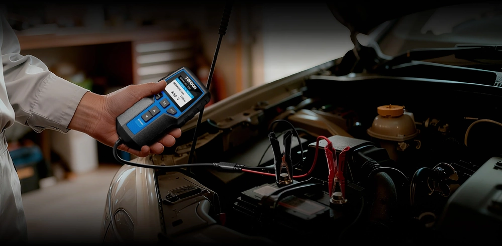The TOPDON BT200 is a professional automotive battery analyzer engineered to deliver accurate diagnostics for 12V and 24V lead-acid batteries. Designed for technicians, workshops, and vehicle owners, it performs comprehensive battery, cranking, and charging system tests with up to 99.5% accuracy. By analyzing voltage, CCA performance, and charging output, the BT200 provides reliable insight into battery condition and electrical system health. Its compact design, intuitive operation, and clear color display make advanced diagnostics efficient and accessible in both workshop and mobile environments.